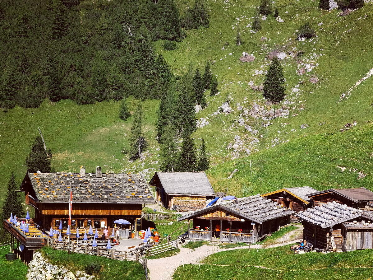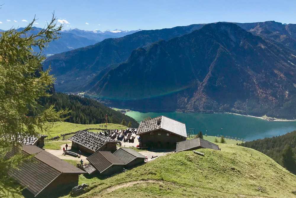 Von dort aus führt der Weg weiter zur Dalfaz Alm. Alternativ kann man auch die Rofanseilbahn nutzen und von der Bergstation aus in etwa 45 Minuten gemütlich zur Alm wandern – ideal für Familien oder Genusswanderer.