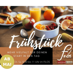 Das tolle Ambiente im Filos lädt ja schon seit längerem ein, einen guten Café, oder auch ein Glas Wein zu trinken. Das Angebot wird nun um ein tolles Frühstück erweitert.