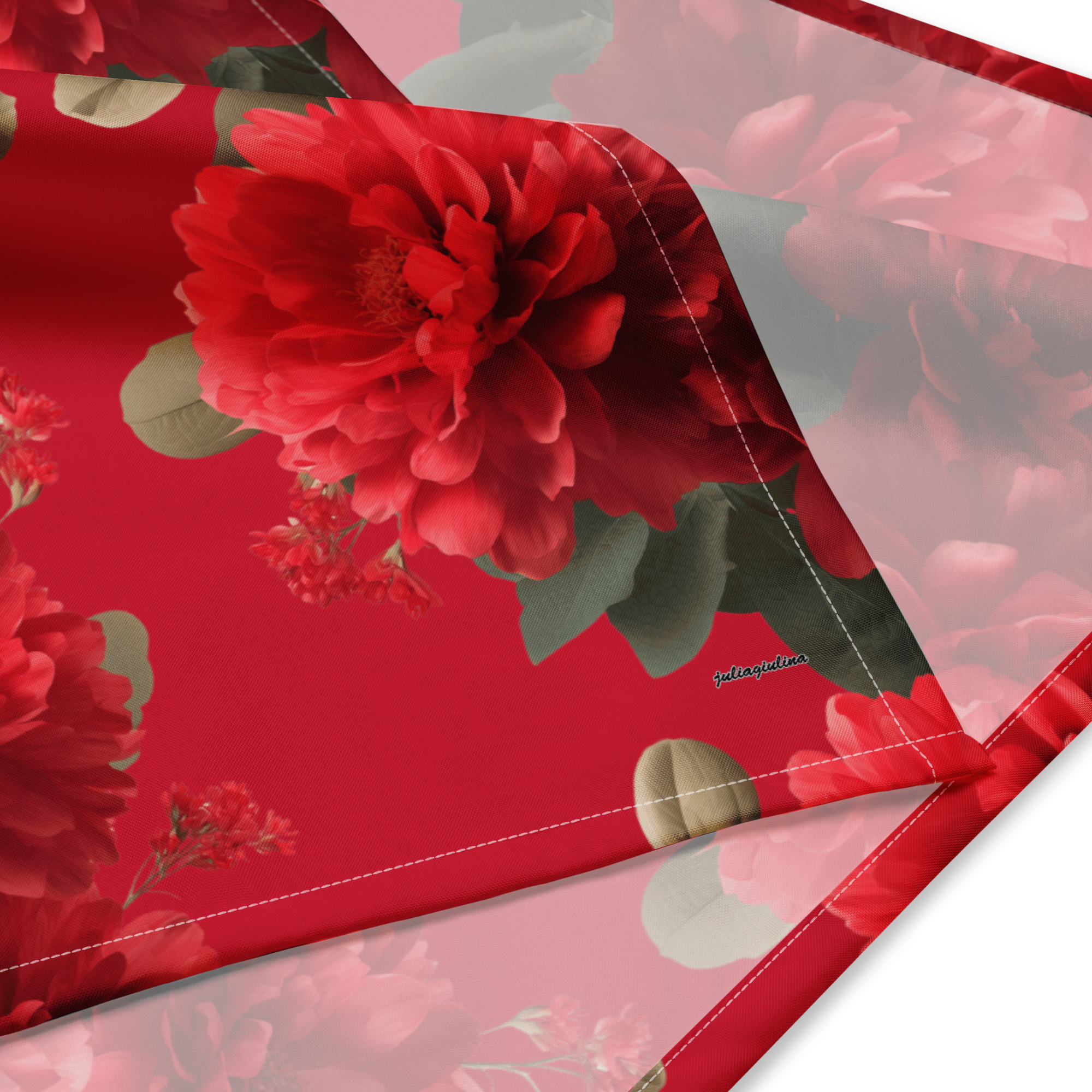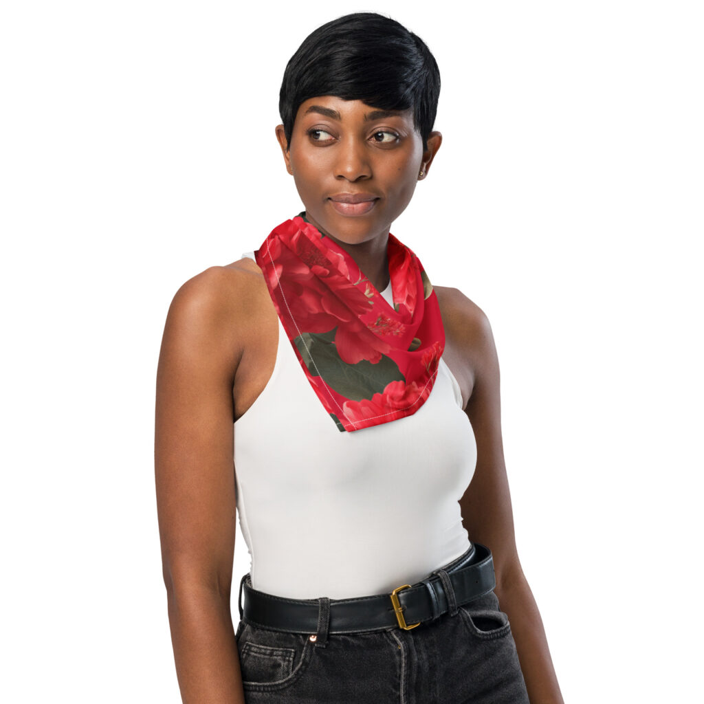 Ob als Stirnband, Halstuch oder Armband – dieses Accessoire bringt Abwechslung in deine Outfits. Und warum nicht gleich ein zweites für dein Haustier mitbestellen? Das Design von juliagiulina zeigt rote Blumen um aufzufallen 🙂